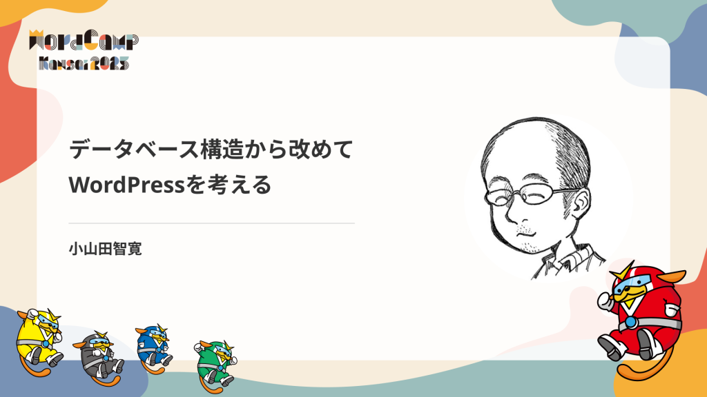 とはいえ、WordPressの操作感やインターネットでの立ち位置は大きく変わりましたが、投稿(カスタム投稿)、固定ページ、カスタム分類、カスタムフィールドといったデータに関係する部分については大きな変化は無いように思います。そこでWordPressがどのようにデータを持っているのか、データベースの構造に注目して、改めてWordPressについて考えたいと思います。