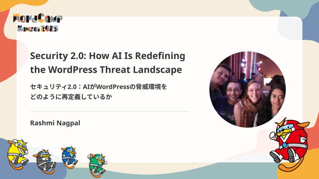 このセッションでは、LLaMA、Mistral、Gemmaといったコミュニティ主導のAIモデルをWordPressセキュリティツールに統合する方法を探ります。これらのモデルを用いて、プラグインの動作における異常を検知し、セキュリティプレイブックをリアルタイムで生成し、パッチ適用を自動化する方法を学びます。この講演の3つの重要なポイントは以下のとおりです。