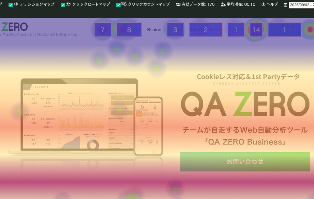 たとえば、あるページを開くとチャットが現れ、「読まれている場所はここですよ」とアドバイス。さらに、ヒートマップや訪問者の動きの再生も、その場で見られるので、感覚的にサイトの課題がつかめます。